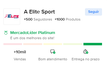 Nível no Mercado Livre: Para manter-se competitiva e no topo, a Elite Sport opera com o objetivo constante de atingir e manter as melhores classificações de vendedor (como MercadoLíder), um indicativo de alto volume de vendas, excelente desempenho e baixo índice de reclamações.