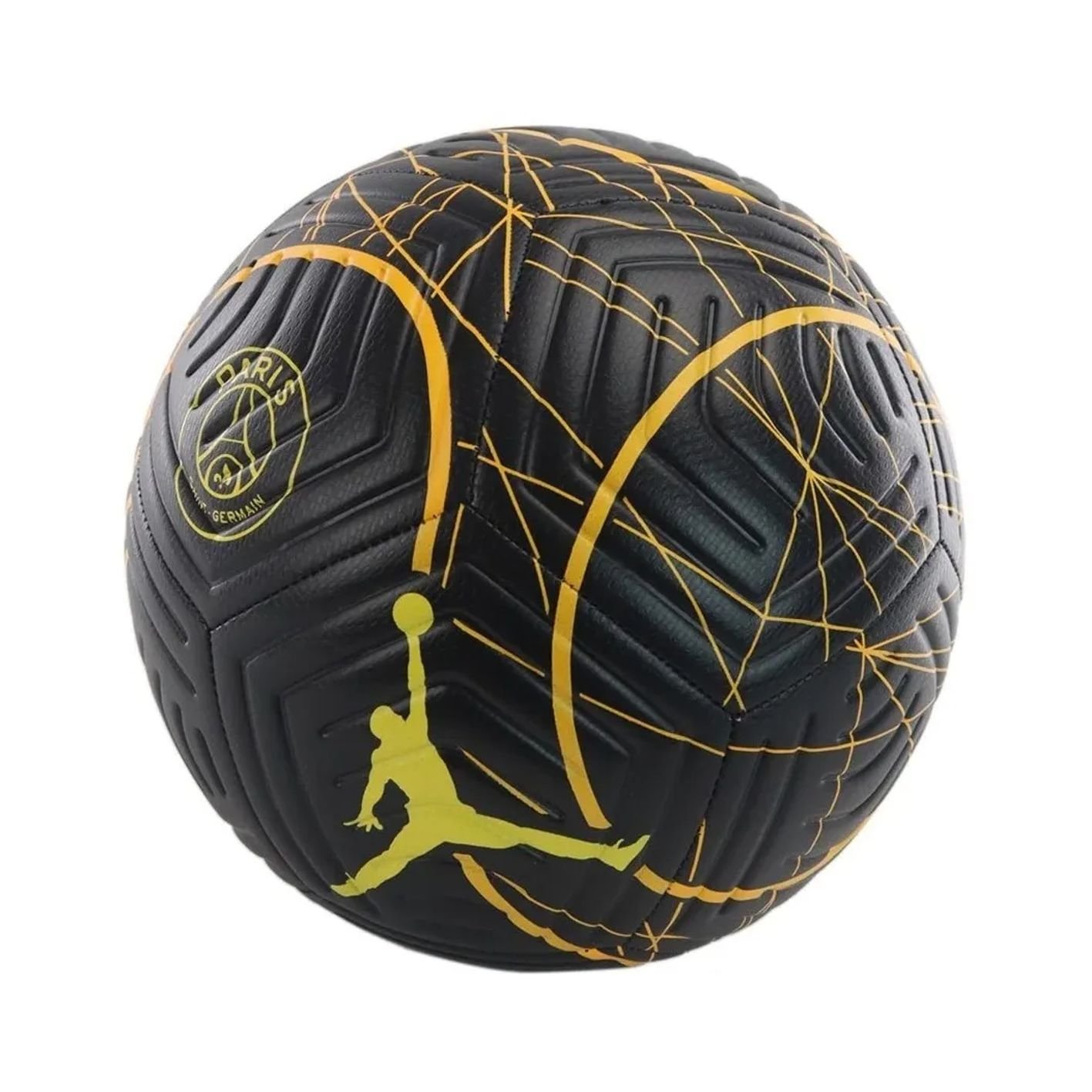 A bola de futebol Paris Saint-Germain Strike está pronta para voar para o fundo da rede. Um revestimento texturizado com sulcos estabilizadores ajuda a posicionar a bola com precisão.