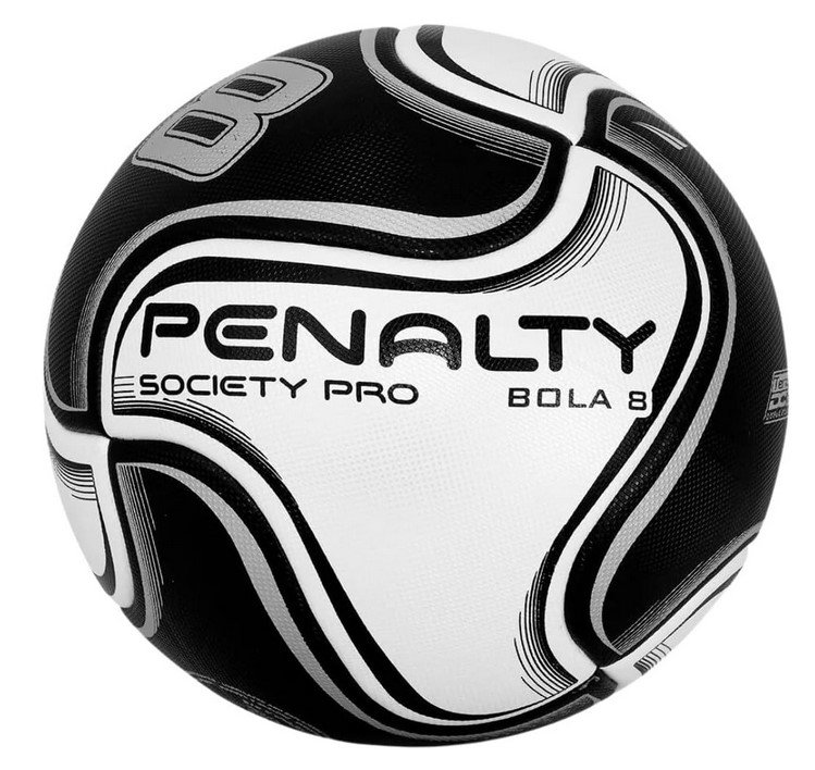 Produzida para jogos de futebol em gramados sintéticos a Bola Society Penalty 8 Pro possui tamanho padrão e superfície sem costuras para chutes astronômicos.