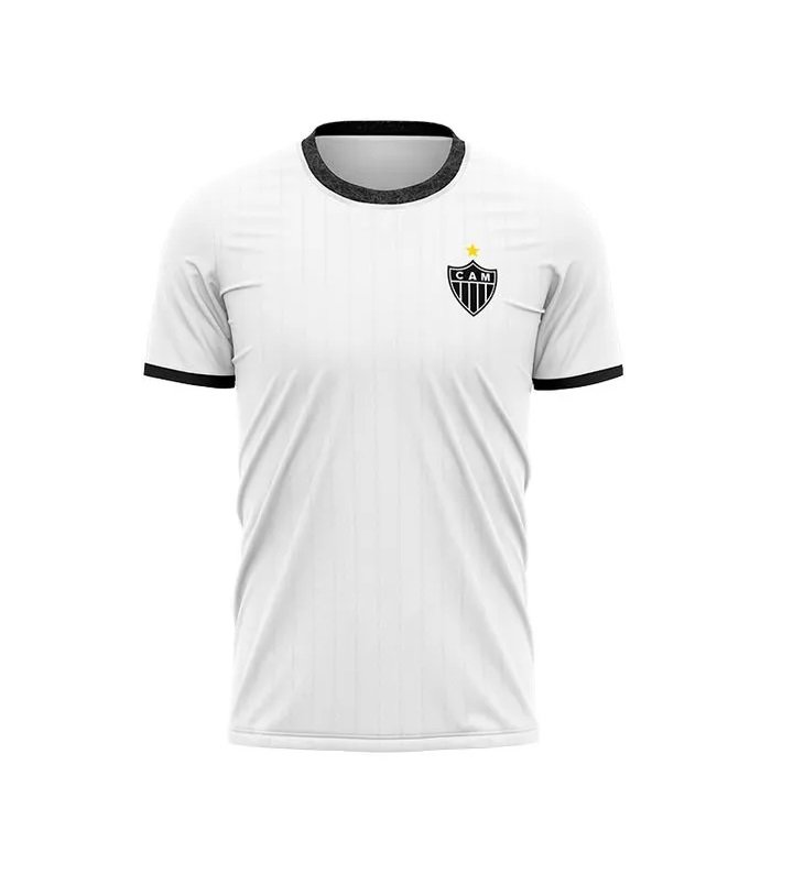 A peça conta com punhos e golas contrastantes e uma estampa exclusiva de toque zero, destacando o escudo e o Galo, mascote do clube, para um visual único e cheio de personalidade.