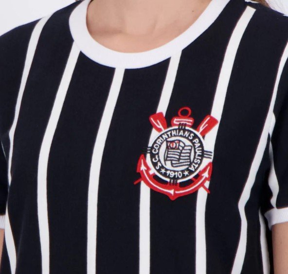 A Camisa Corinthians Feminina Listrada Malha 31499 é a escolha perfeita para as torcedoras apaixonadas pelo Timão. Confeccionada em 100% algodão, proporciona conforto e leveza, ideal para os dias de jogo ou para compor um look casual e estiloso. Seu design listrado e a gola redonda trazem um toque moderno, enquanto o escudo bordado exibe com orgulho a sua torcida.