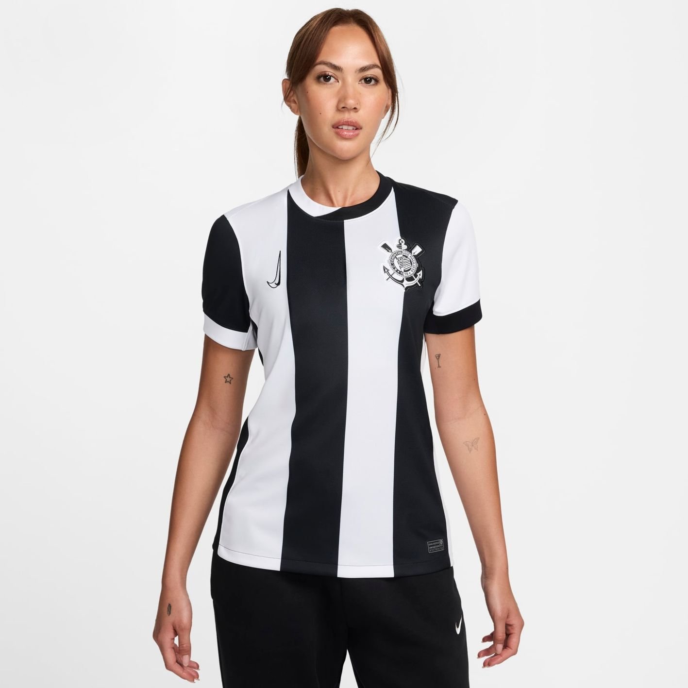 Dois logos Swoosh. Dois times. Um objetivo. Usada pelos times masculino e feminino do S.C. Corinthians, esta camisa tem como objetivo o crescimento do jogo que amamos. O design duplo Swoosh simboliza a união entre os dois times e aponta para cima para celebrar a ascensão do futebol feminino. Juntos podemos inspirar a próxima geração de atletas. Juntos somos mais fortes.