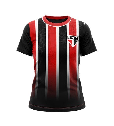 Camiseta com gola bicolor e barra costas combinadas. Além disso, a peça leva estampa de toque zero com estádio Morumbi e elementos de engranagens remetendo a máquina de títulos. Tecido: Dry Max