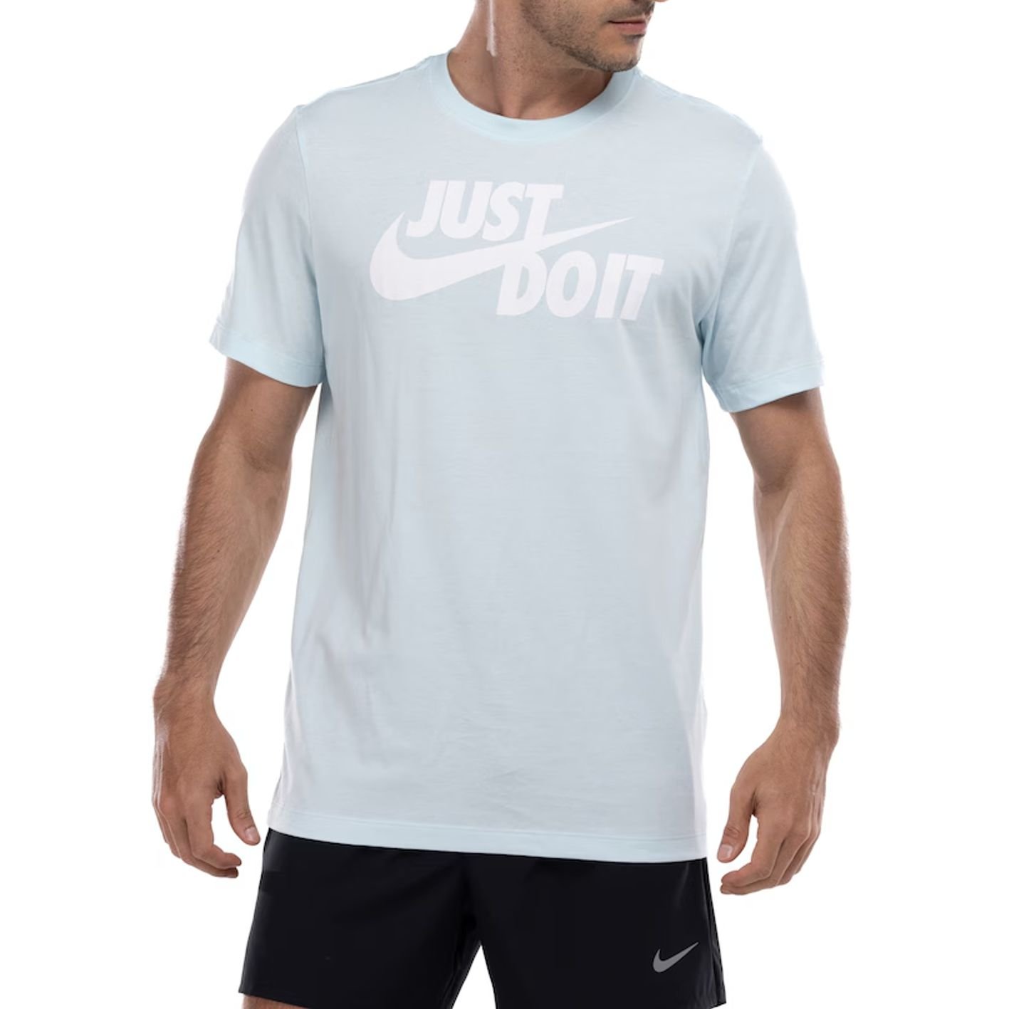 Já o icônico slogan “JUST DO IT” valoriza o visual da camiseta masculina e retrata sua popularidade no mundo esportivo com estilo e atitude.