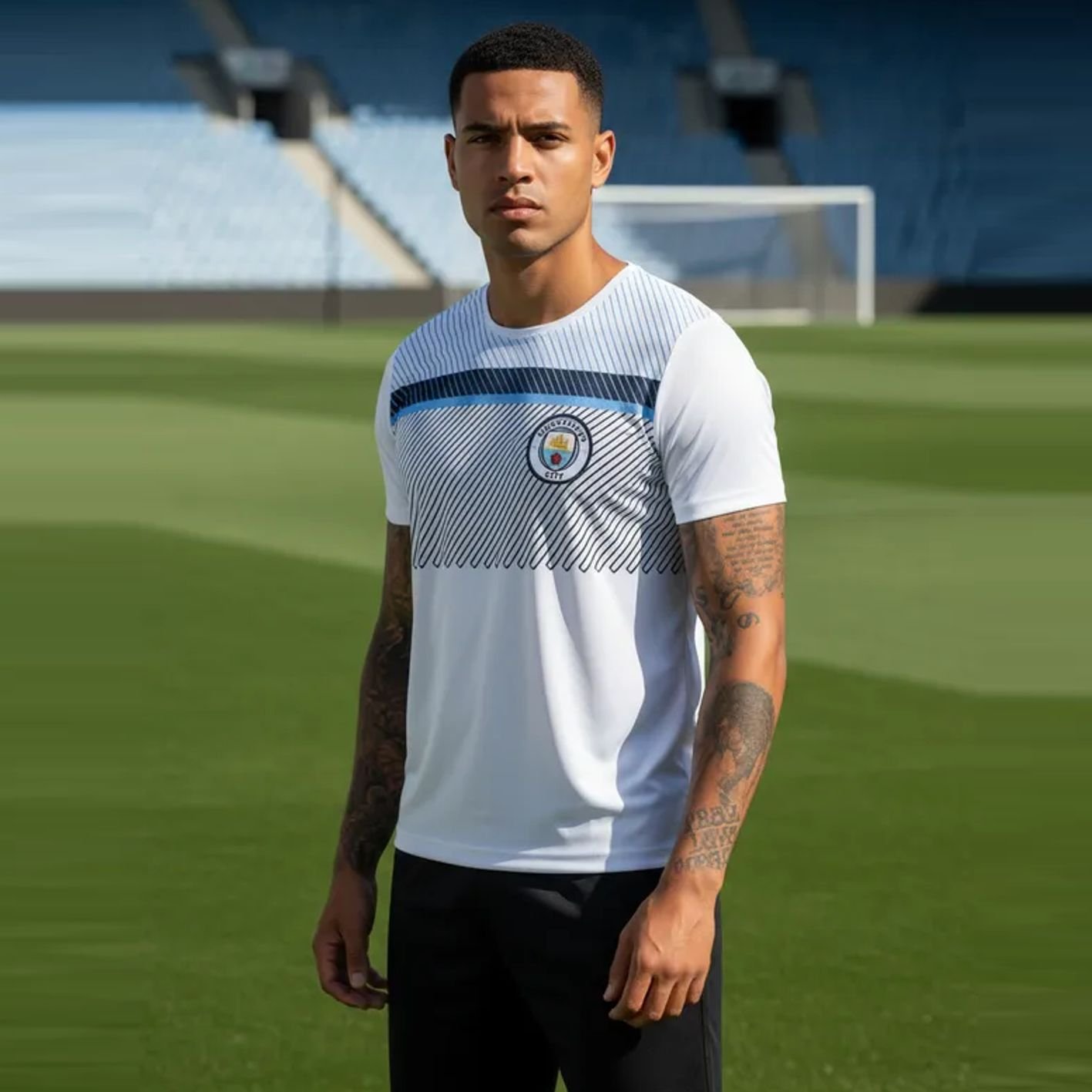 Escudo e Cores Oficiais: As camisas exibem o escudo oficial do clube, geralmente estampado ou aplicado por serigrafia de alta qualidade na região do peito. As cores utilizadas na peça respeitam as cores tradicionais e oficiais do time licenciado.