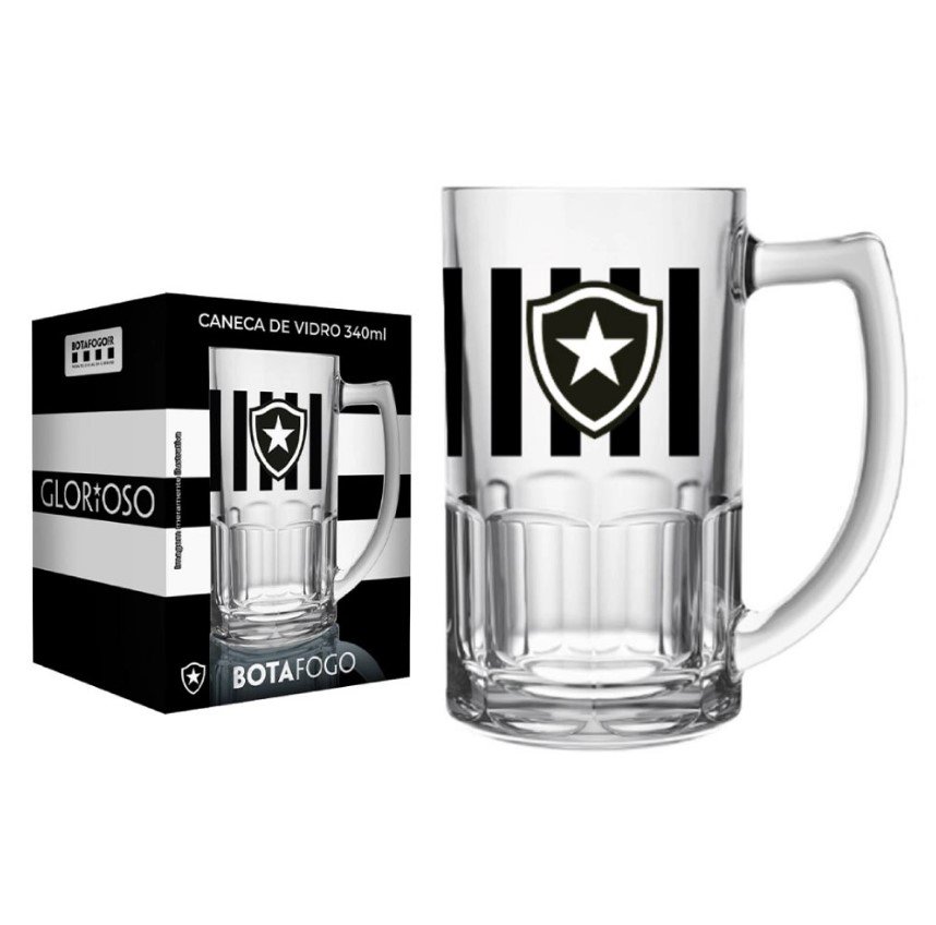 A Caneca chopp de Vidro Botafogo 340 ml na caixa.