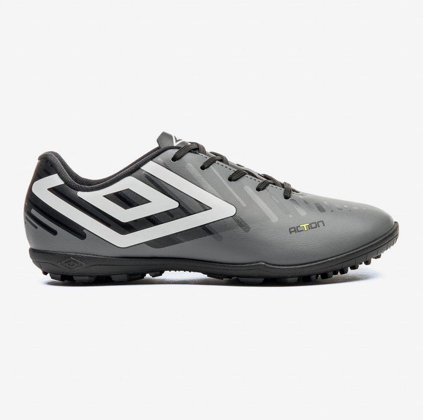 Indicada para jogadores iniciantes que se destacam dentro das quadras de society, a Chuteira Society Umbro Action exibe artes gráficas personalizadas aplicadas em camadas, com efeito degradê, que oferecem um visual autêntico e moderno no melhor estilo Umbro. Cabedal confeccionado em material laminado. Possui grafismos em “layers” com aplicação de verniz incolor sobre as artes, Diamante Umbro em destaque na lateral, assinatura do modelo na parte frontal e palmilha interna macia em EVA com tecido forrado. O solado de society HG é composto por blenda de PVC e TPU, que oferece tração e durabilidade.