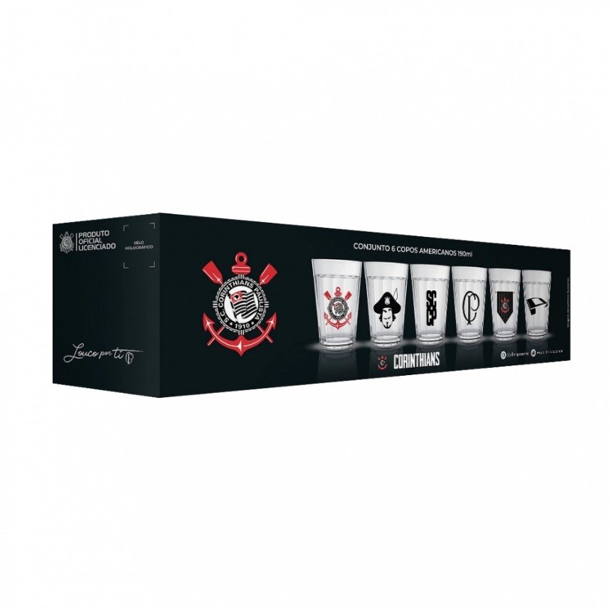 Coleção inspirada nos torcedores do Todo Poderoso Timão. Produzido em vidro com o tradicional formato americano, o conjunto une às principais fases do time através da alteração do seu escudo até os dias atuais. Ideal para servir Cervejas e Chopes. Contém embalagem personalizada, sendo uma excelente opção para presentes.