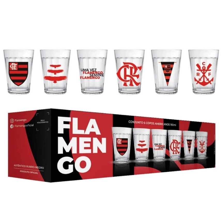 Copo Americano Kit Com 6 Flamengo 2916033 Oficial Licenciada