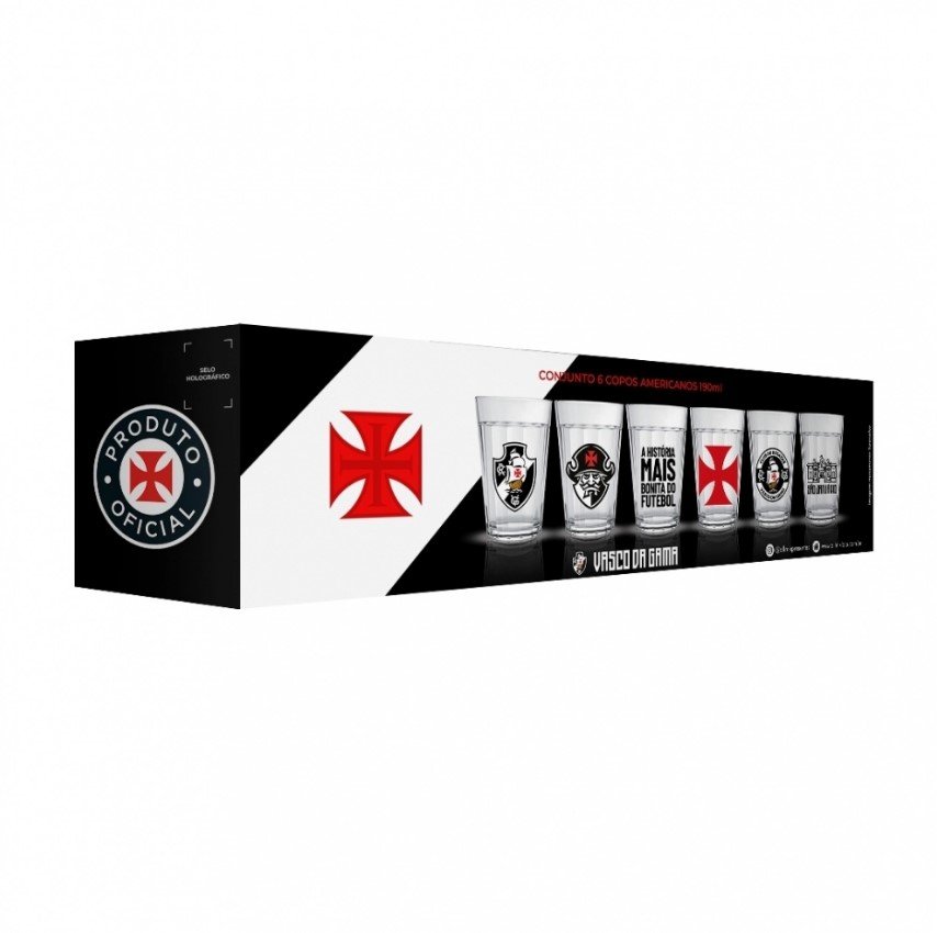 Coleção inspirada nos torcedores do Vascão. Produzido em vidro com o tradicional formato americano, o conjunto une os principais escudos do time. Ideal para servir Cervejas e Chopes. Contém embalagem personalizada, sendo uma excelente opção para presentes.