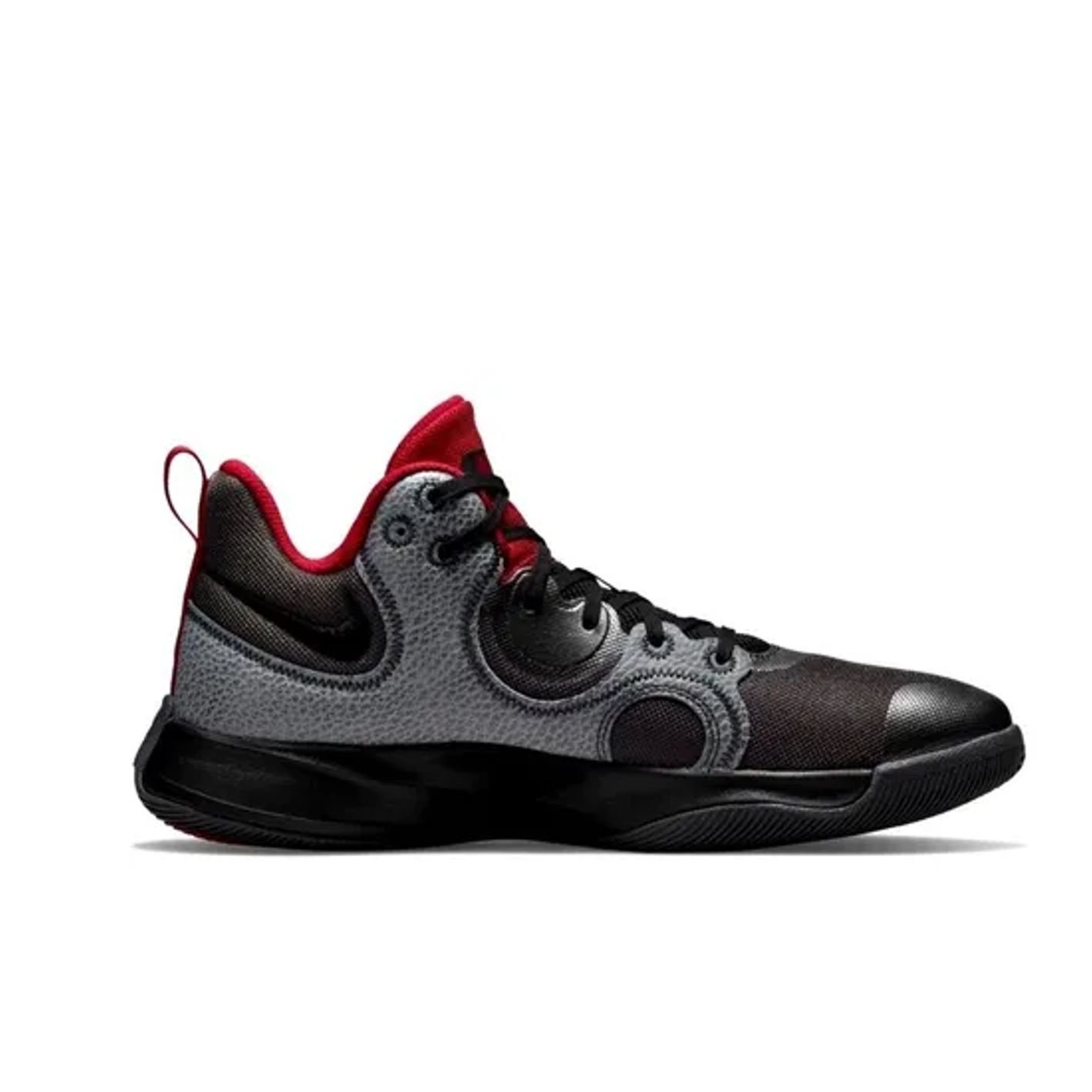 A tração em padrão espinha de peixe modificada com círculo pivot proporciona aderência à quadra e mudanças de direção ágeis.